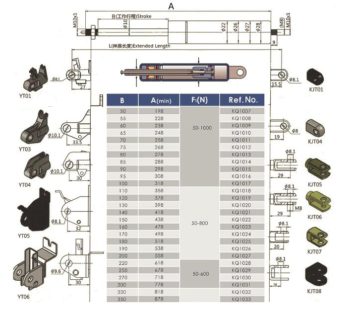 注:由于氣彈簧是非標(biāo)準(zhǔn)的,以上僅為型號(hào)的一部分。我們可以根據(jù)客戶的要求定制。
