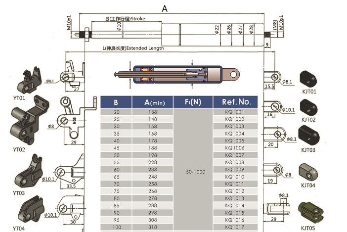注:由于氣彈簧是非標準的,以上僅為型號的一部分。我們可以根據(jù)客戶的要求定制。