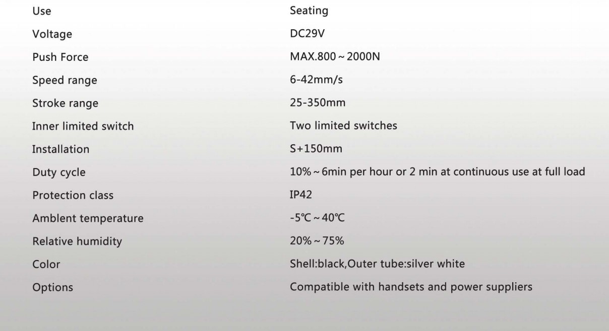 外觀新穎、制作精良、噪音小、操作簡單,成為國內(nèi)外暢銷產(chǎn)品,廣泛應(yīng)用于電動沙發(fā)、醫(yī)療床、手術(shù)床、按摩椅等。
