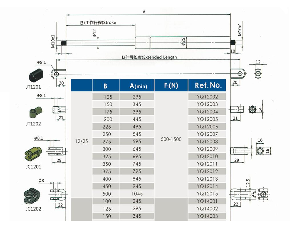 注:由于氣彈簧是非標準的,以上僅為型號的一部分。我們可以根據(jù)客戶的要求定制。